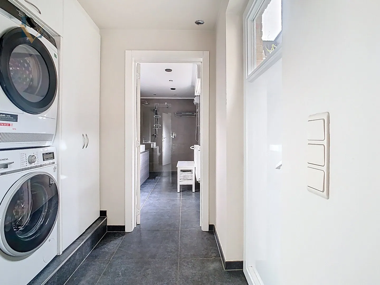 Op het gelijkvloers betreedt u de woning via de gezellige woon- en eetkamer. Aansluitend bevindt zich een ruime, volledig geïnstalleerde leefkeuken. Verder zijn er een praktische wasplaats en een vernieuwde badkamer uitgerust met inloopdouche, lavabo en toilet.