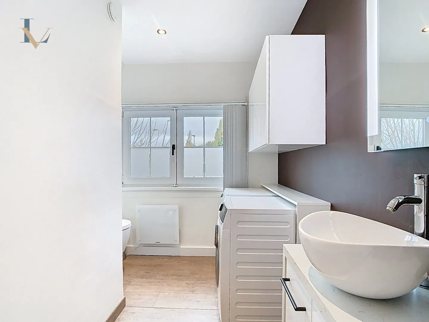 Een afzonderlijk toilet en een praktische wasplaats maken deze verdieping compleet.